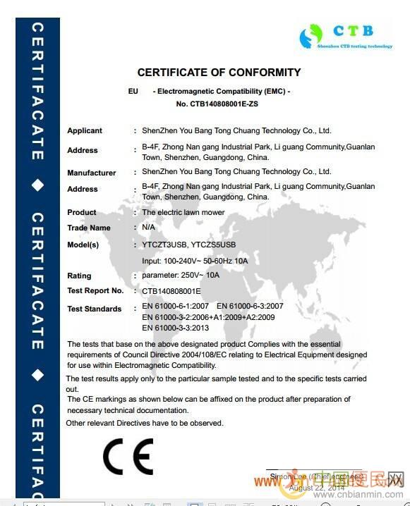 5.整机或元部件认证书复印件欢迎www.cnbianmin.com。